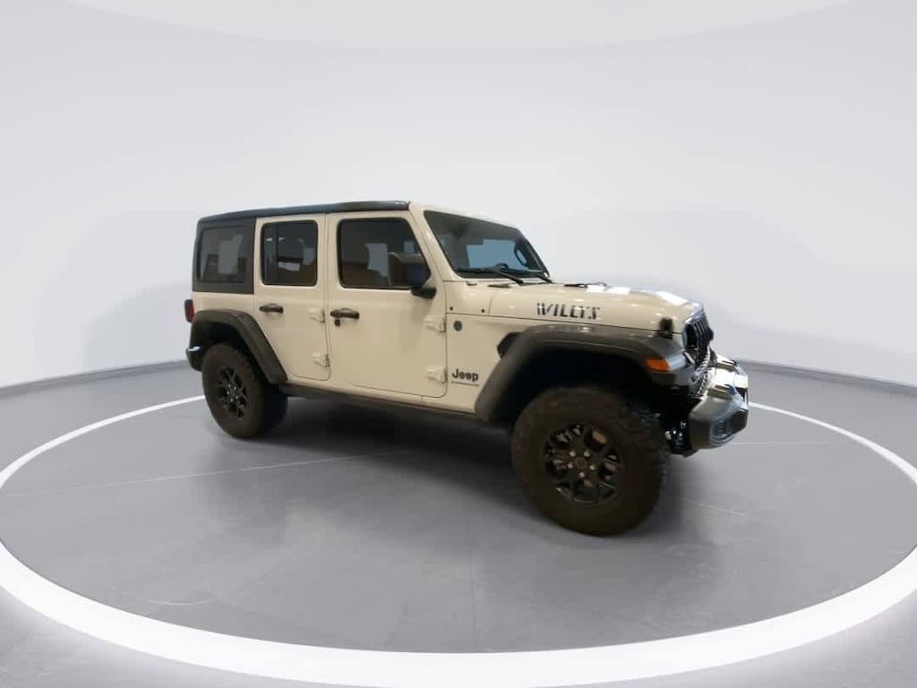 QUICK ORDER PACKAGE 29W WILLYS Engine: 2.0L I4 DOHC DI Turbo PHEV, Transmission: 8-Speed Auto 8P75PH PHEV, Willys, 4xe 4-Wheel Drive Swing Gate Decal, 7 & 4 Pin Wiring Harness, Willys 4xe Hood Decal, Conventional Differential Front Axle, Off-Road Plus Mode, Black Grille, Rock Protection Sill Rails, 97 MPH Vehicle Max Speed Calibration, Front LED Fog Lamps, LED Premium Reflector Headlamps, Auxiliary Switches, E-Locker Rear Axle, Molded in Color Rubicon Highline Flare, CONVENIENCE GROUP Emergency/Assistance Call, 2-Door Passive Entry, Front Door Locks, Remote Start System, Universal Garage Door Opener, Heated Front Seats, Heated Steering Wheel, BLACK 3-PIECE HARD TOP Freedom Panel Storage Bag, Rear Window Defroster, Rear Window Wiper/Washer, No Soft Top, TRANSMISSION: 8-SPEED AUTO 8P75PH PHEV (STD), ENGINE: 2.0L I4 DOHC DI TURBO PHEV (STD). Jeep Willys with Bright White Clearcoat exterior and Black interior features a 4 Cylinder Engine with 375 HP at 5250 RPM*.